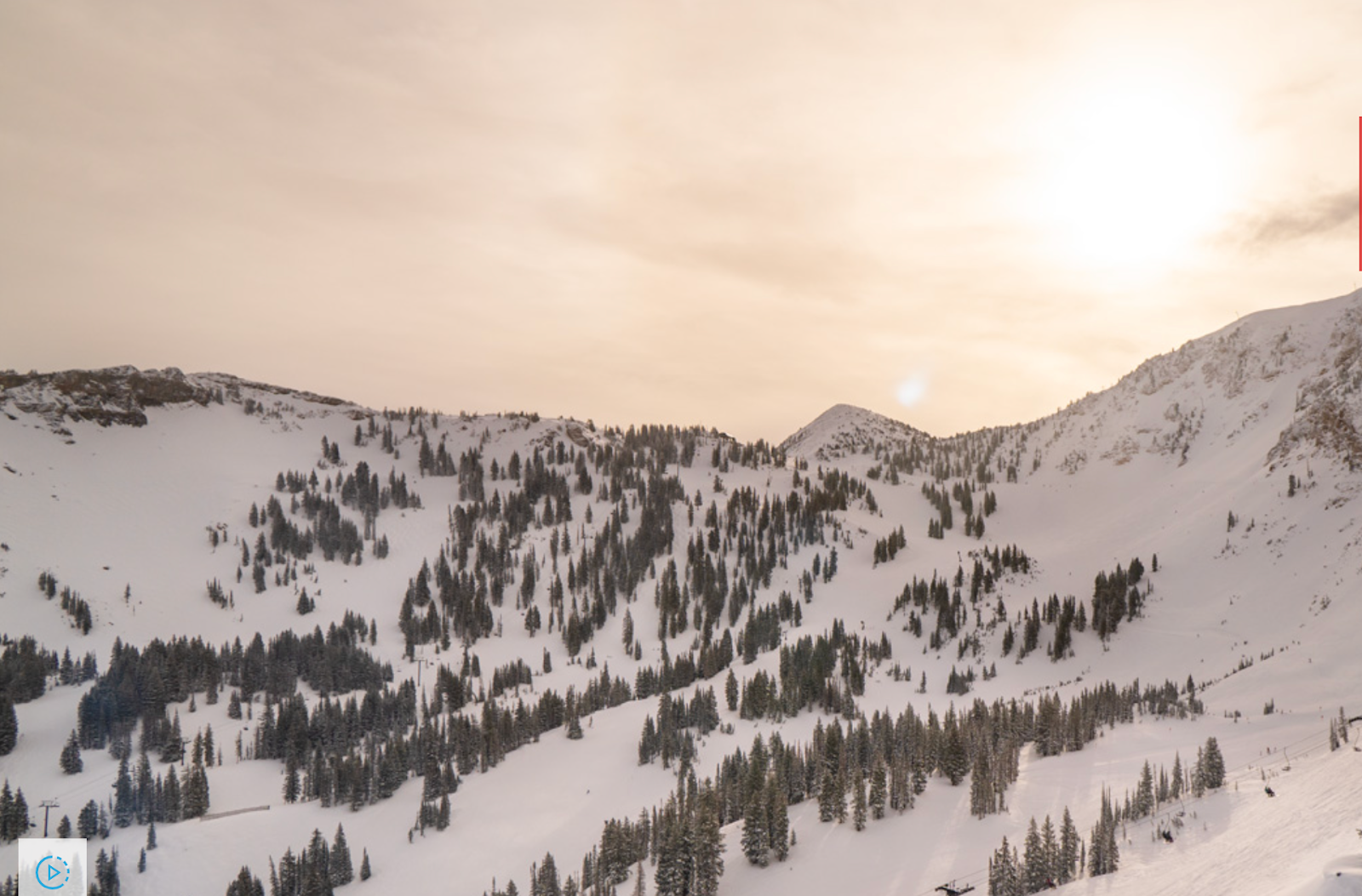 | Currently snowing at Alta Ski Area this morning, looking West down Little Cottonwood Canyon. Image courtesy of Alta Ski Area. |